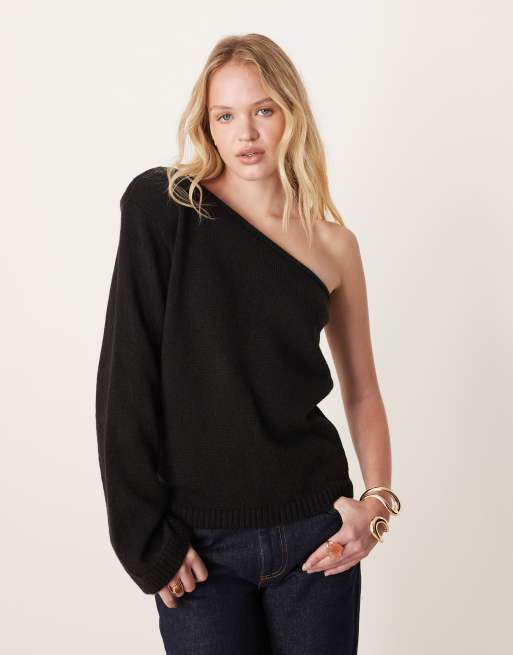 ASOS DESIGN - Sort-strikket oneshoulder-top med skulderpude