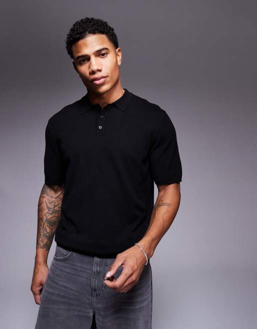 ASOS DESIGN - Sort-strikket polo - Del af sæt
