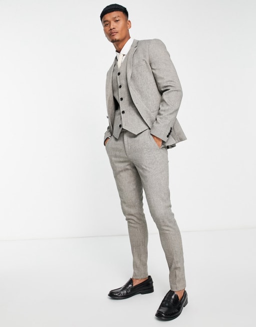 ASOS DESIGN - Sort super skinny-jakkesæt i tweed-uldblanding