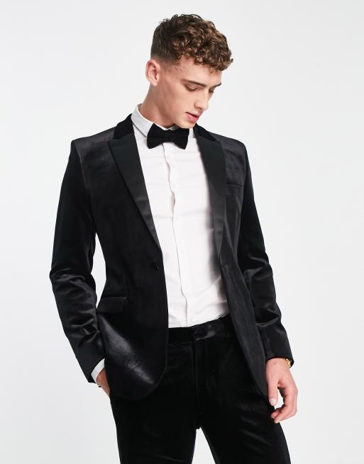 ASOS DESIGN - Sort super skinny-smokingjakke i velour