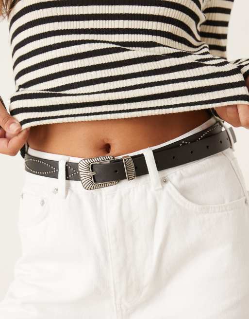 ASOS DESIGN - Sort talje- og hoftebælte til jeans med westerndesign og nitter