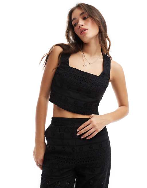 ASOS DESIGN - Sort top med firkantet hals i broderie anglaise - Del af sæt