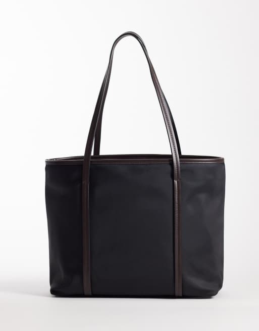 ASOS DESIGN - Sort tote-taske i nylon med kontraststropper