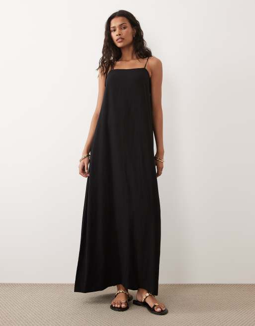 ASOS DESIGN - Sort trapez-maxikjole i hørblanding