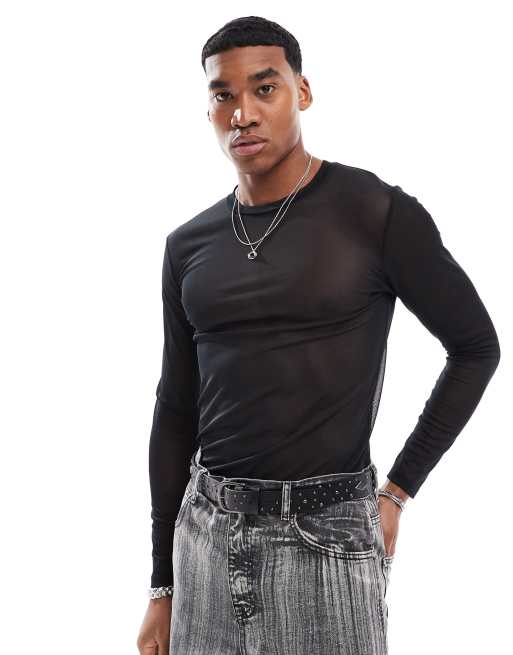 ASOS DESIGN - Sort, tætsiddende og langærmet T-shirt i mesh
