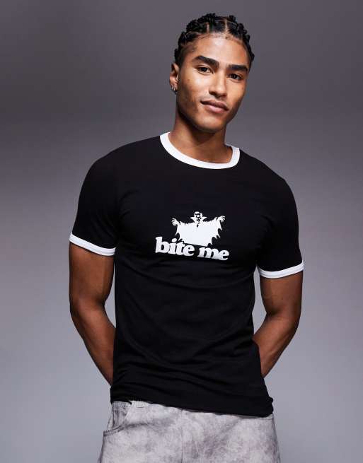 ASOS DESIGN - Sort tætsiddende ringer-T-shirt med slogantekst