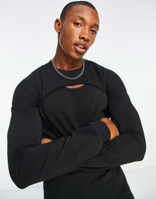 ASOS DESIGN - Sort tætsiddende sweatshirt med dobbeltlag