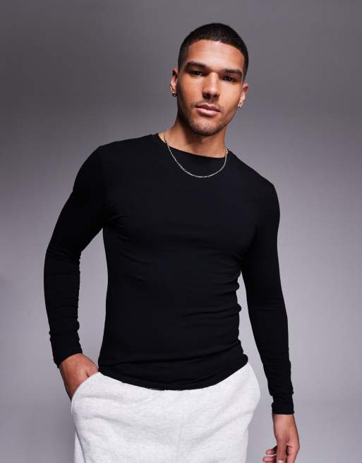 ASOS DESIGN - Sort tætsiddende T-shirt med lange ærmer