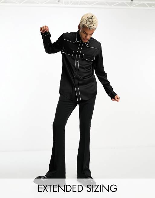 ASOS DESIGN - Sort western-skjorte i satin med almindelig pasform