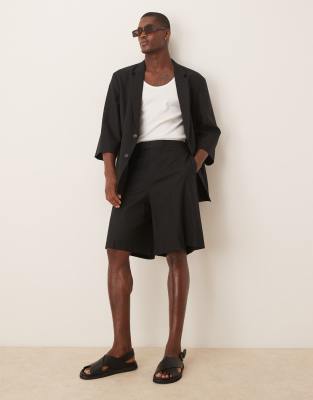 ASOS DESIGN - Sorte bermudashorts i hørblanding med elastisk talje