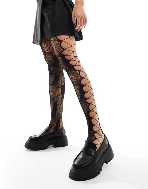 ASOS DESIGN - Sorte blondestrømpebukser med udskæringsdetaljer i siderne