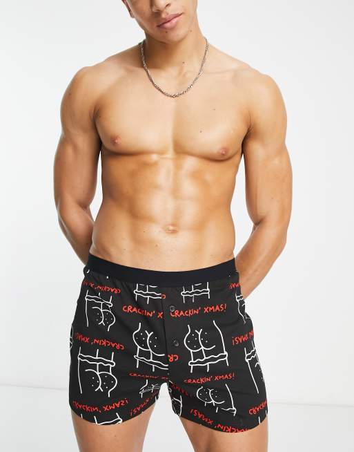 ASOS DESIGN - Sorte boksershorts med juleprint i jersey