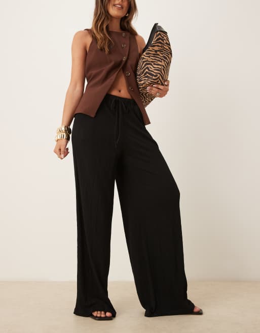 ASOS DESIGN - Sorte bukser i krølstof med bindetalje og brede ben