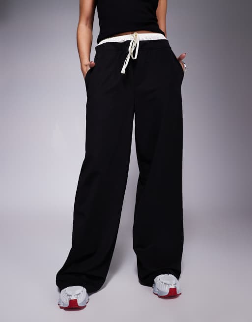 ASOS DESIGN - Sorte bukser i satin med bokserdetalje og brede ben