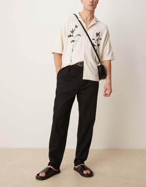 ASOS DESIGN - Sorte bukser med gulerodsform og plisseringer i hørlook