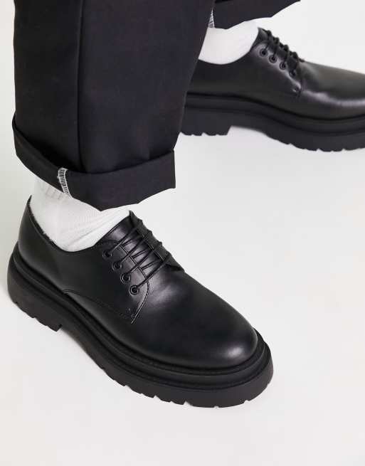 ASOS DESIGN - Sorte Derbysko med chunky sål i imiteret læder