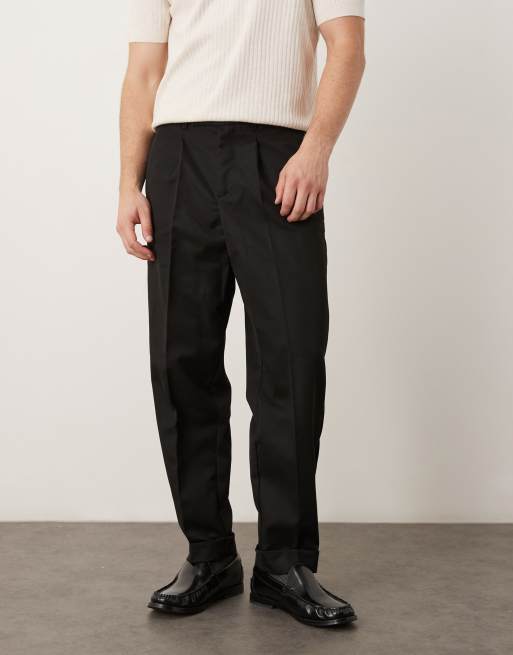 ASOS DESIGN - Sorte elegante bukser med carrot-pasform og taljebånd med knapper