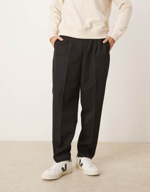 ASOS DESIGN - Sorte elegante tapered bukser med plisseringer og elastisk taljebånd i afslappet pasform