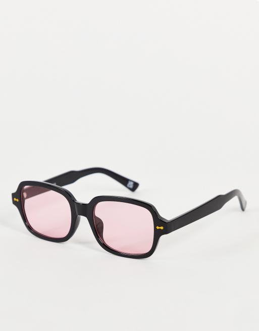 ASOS DESIGN - Sorte firkantede solbriller med lyserøde glas