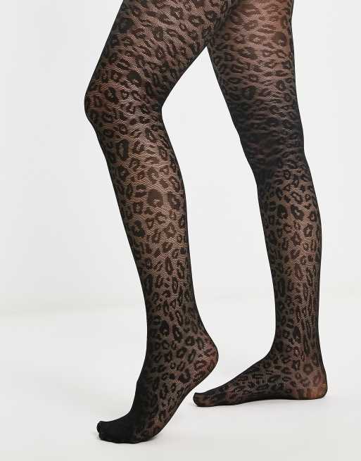 ASOS DESIGN - Sorte fiskenetsstrømpebukser med leopardprint i 30 denier
