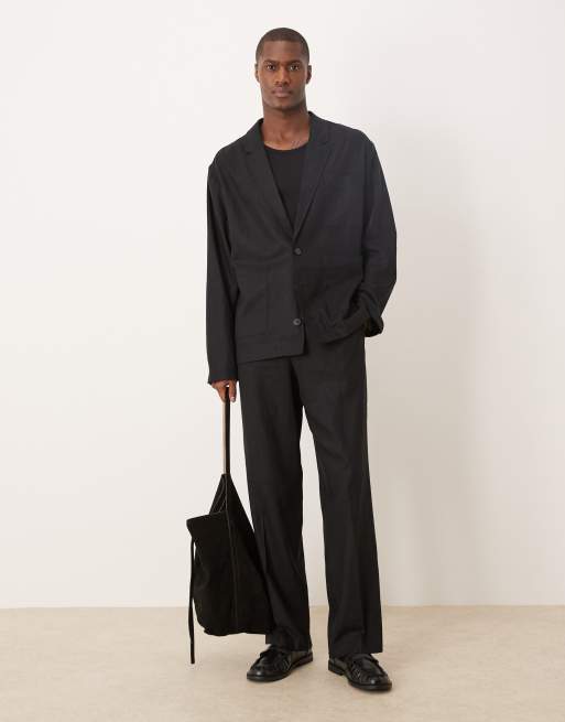 ASOS DESIGN - Sorte habitbukser med vide ben i pull-on-stil i twill