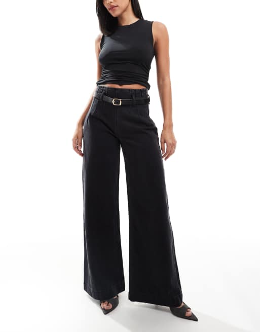 ASOS DESIGN - Sorte jeans med bælte og vide ben