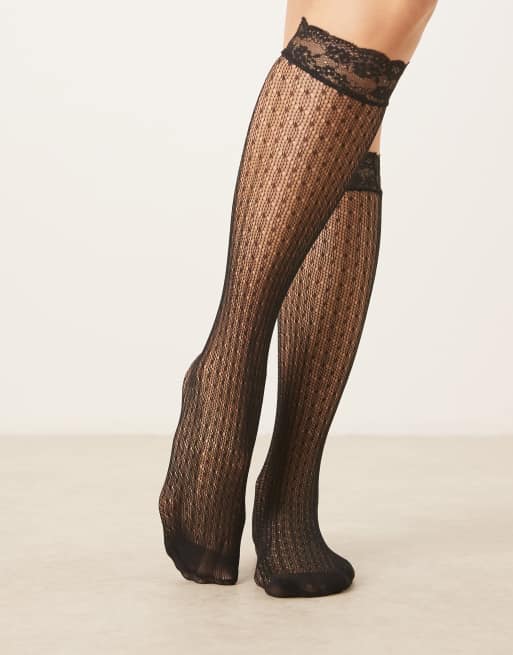 ASOS DESIGN - Sorte knæsokker i blondestof med flæsekanter