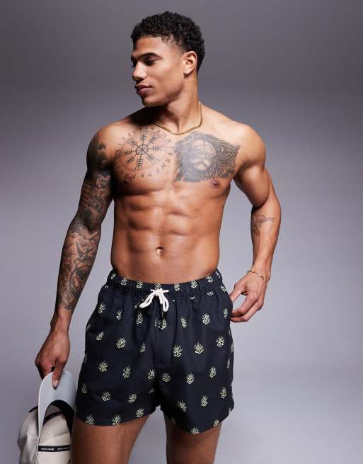 ASOS DESIGN - Sorte korte badeshorts med tangprint