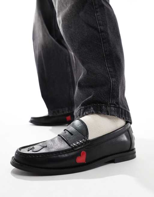 ASOS DESIGN - Sorte læderloafers med røde/hvide detaljer