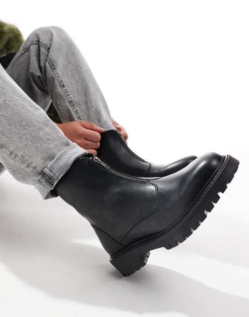 ASOS DESIGN - Sorte læderstøvler med lynlås