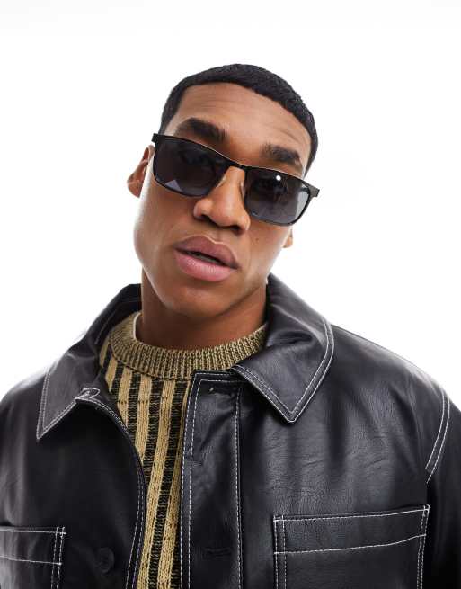 ASOS DESIGN - Sorte og firkantede solbriller med metalstel