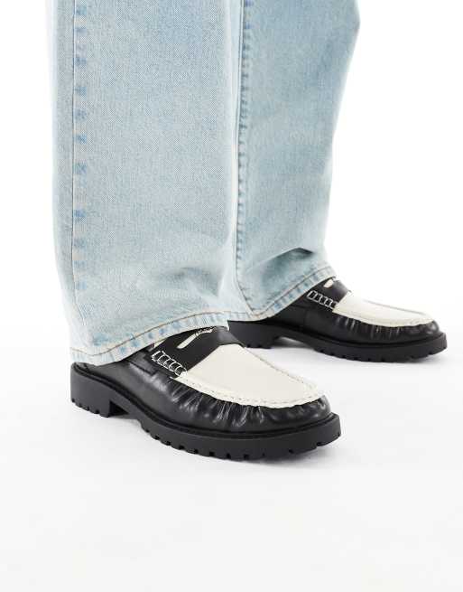 ASOS DESIGN - Sorte og hvide loafers med rillet sål