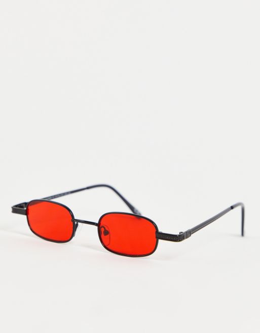 ASOS DESIGN - Sorte og rektangulære mini-solbriller med røde glas og detalje på stellet