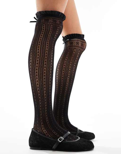 ASOS DESIGN - Sorte overknee-strømper med mønster og flæser