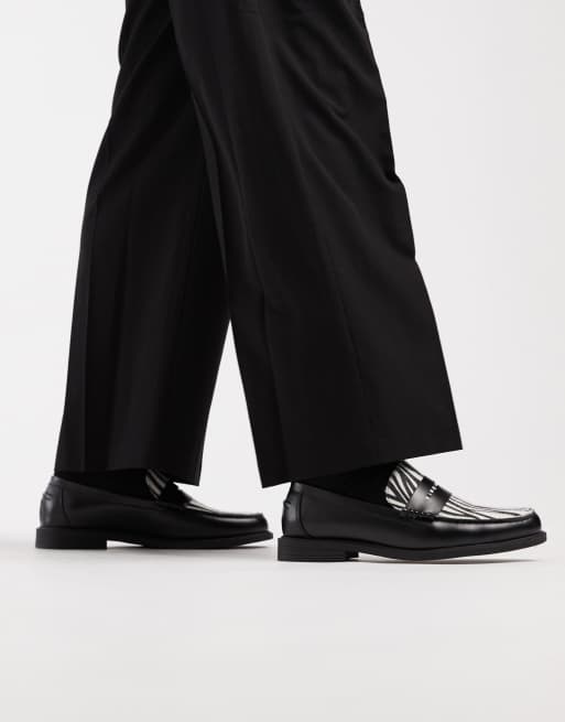 ASOS DESIGN - Sorte penny loafers med imiteret zebraprint