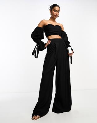 ASOS DESIGN - Sorte plisserede bukser med vidde - Del af sæt