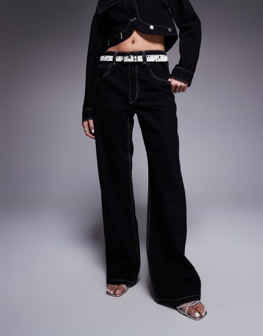 ASOS DESIGN - Sorte posede jeans med kontrasterende syninger - Del af sæt