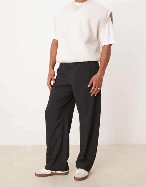 ASOS DESIGN - Sorte pull-on-habitbukser med vide ben