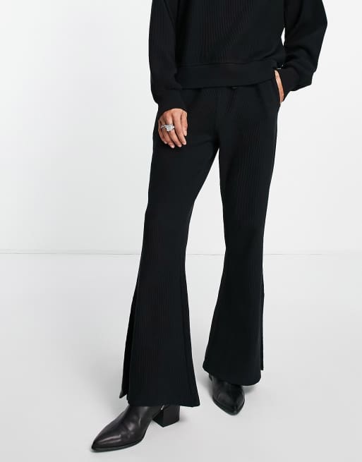 ASOS DESIGN - Sorte ribstrikkede skinny joggingbukser med svaj og sideslids - Del af sæt