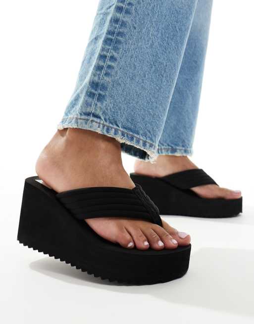 ASOS DESIGN - Sorte sandaler med snoet tårem og kilehæl