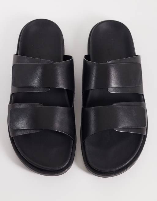 ASOS DESIGN - Sorte sandaler med to remme i læder