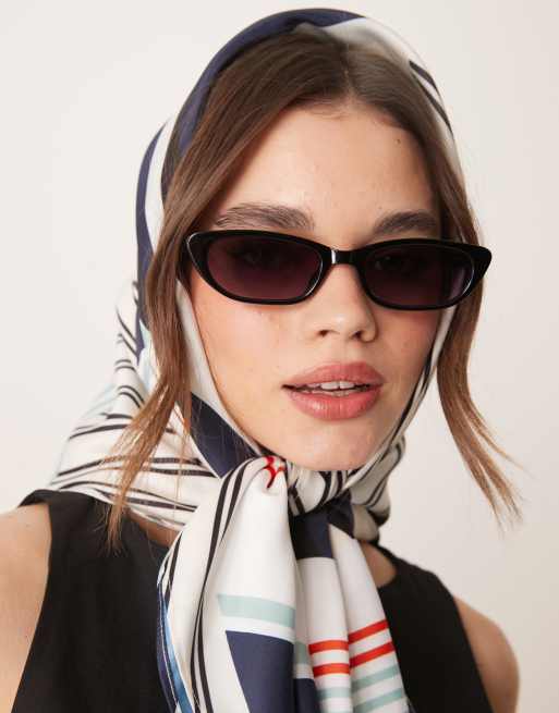 ASOS DESIGN - Sorte skinnende cat eye-solbriller med smalt stel