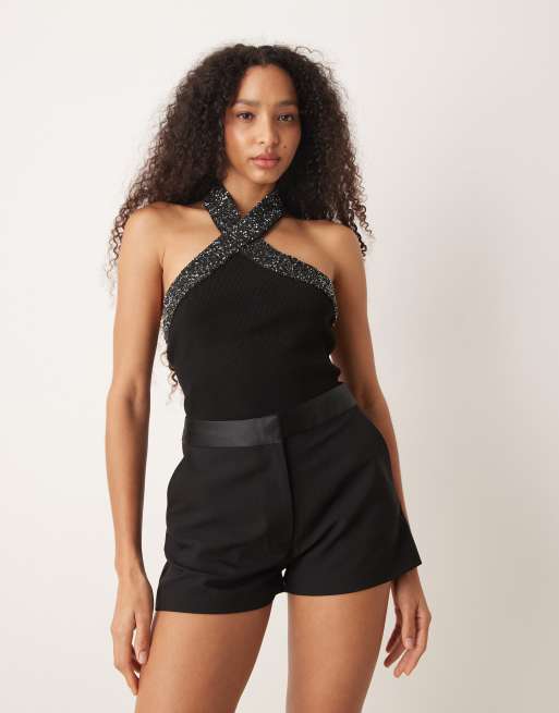 ASOS DESIGN - Sorte skræddersyede mikroshorts med smokinglinning