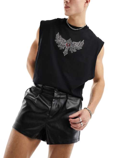ASOS DESIGN - Sorte slim-shorts med læderlook og læg