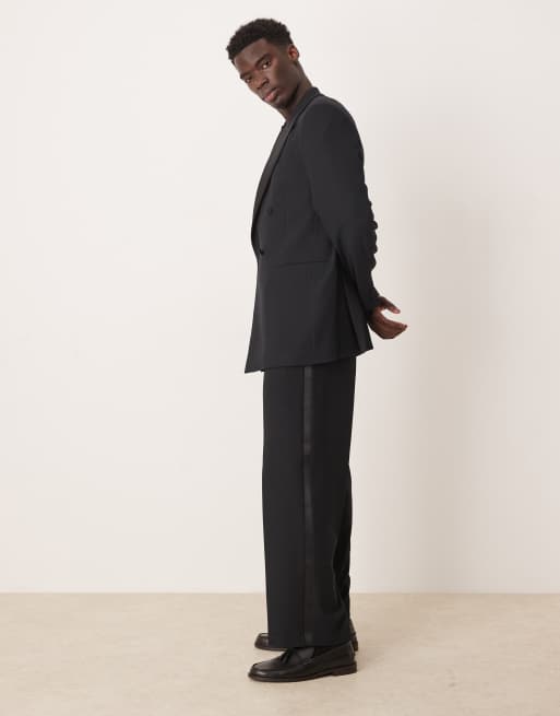 ASOS DESIGN - Sorte smoking-habitbukser med brede ben og tekstur