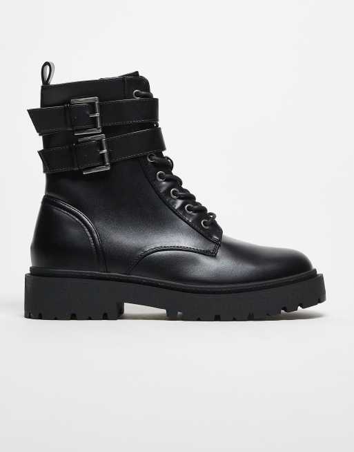 ASOS DESIGN - Sorte snørestøvler med chunky sål og remme