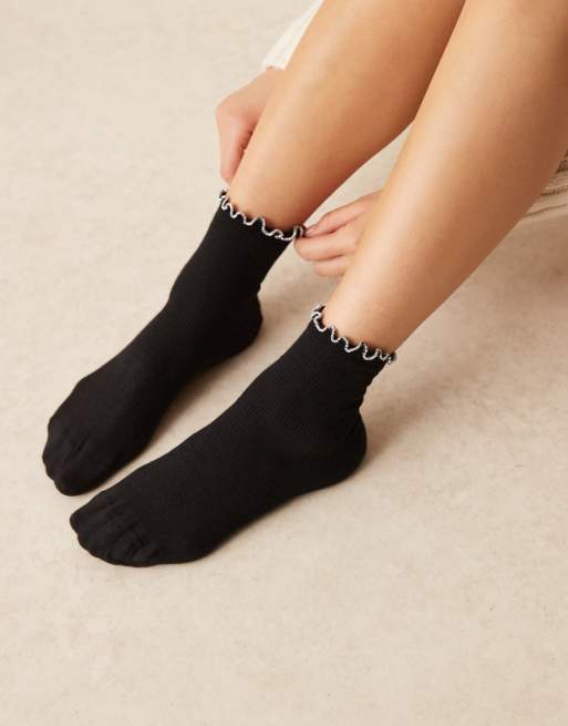 ASOS DESIGN - Sorte sokker med sølvfarvet flæse med glimmer