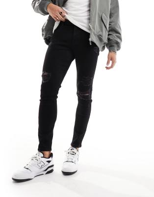 ASOS DESIGN - Sorte spray on-jeans i powerstretch med kraftige flænser