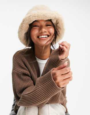 ASOS DESIGN - Stenfarvet bøllehat i imiteret pels