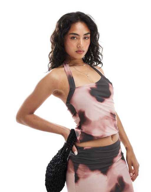 ASOS DESIGN - Stram halterneck-top med abstrakt print - Del af sæt